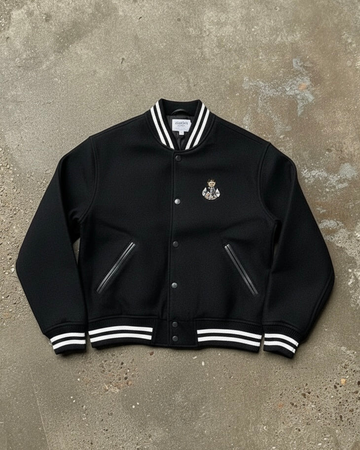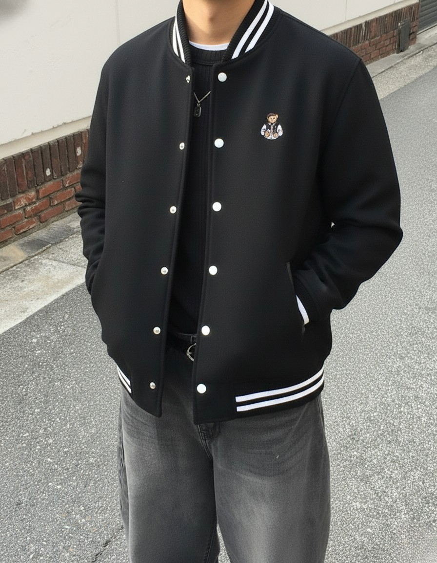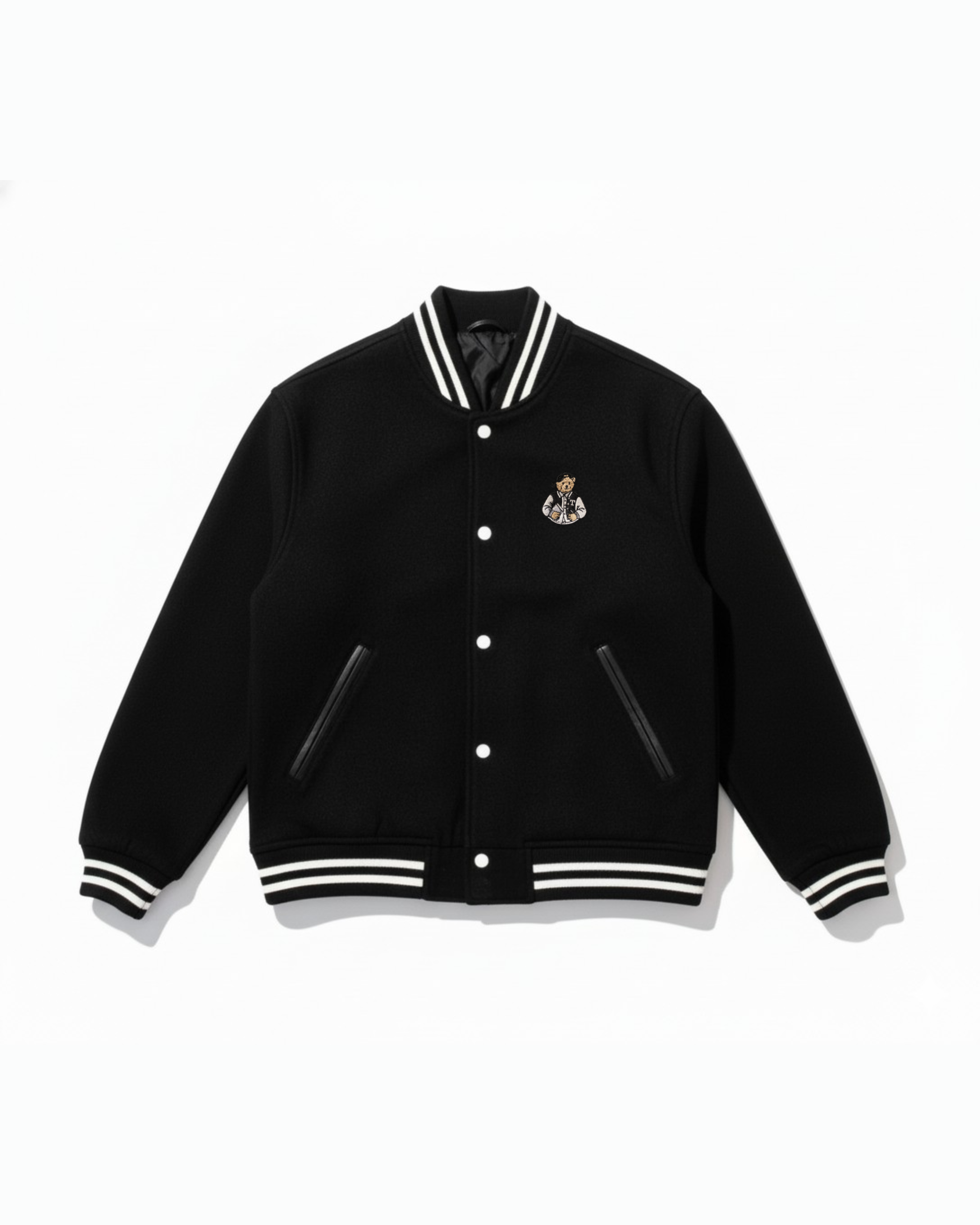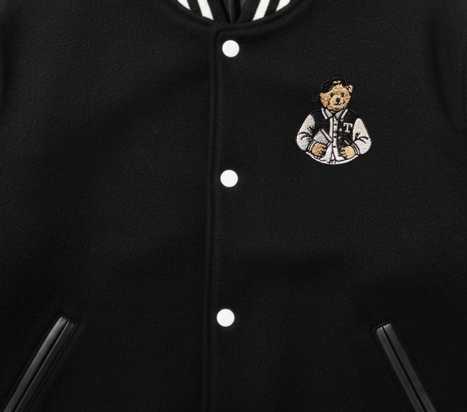 يحتوي جيبين جانبيين باللون الاسود وشعار مطرز على الجهة.